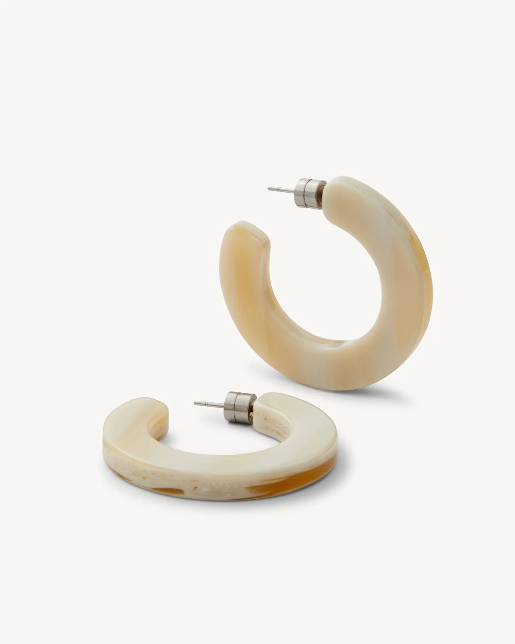 Our signature open hoop earrings, handcrafted from lightweight Italian acetate with barrel backings.